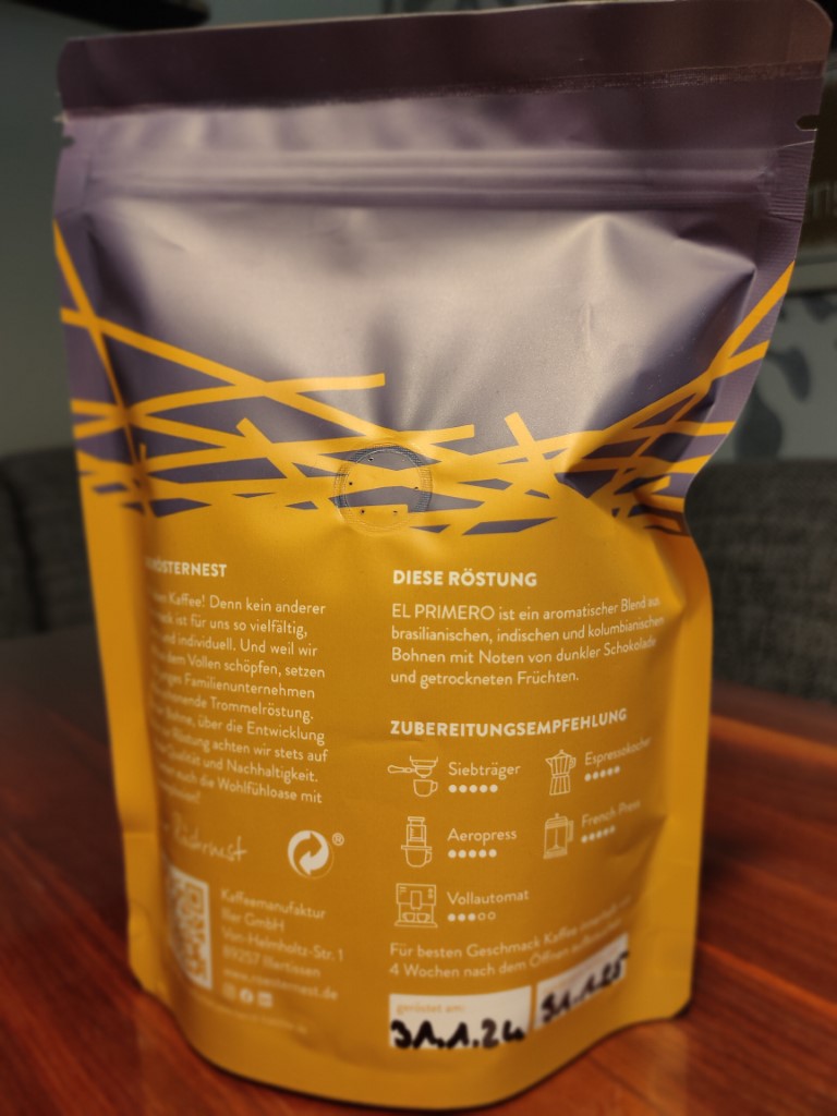 Der erste Geruch der Bohnen lässt einen tief in Vollmilchschokolade eintauchen. Eine Nuance von Rum-Rosine begleitet und untermauert diesen Eindruck. Beim Geschmack bleibt nicht mehr viel übrig. Es dominiert die Säure, die den Espresso in die Richtungslosigkeit drängt. Der Cappuccino punktet mit Schokoladennoten.