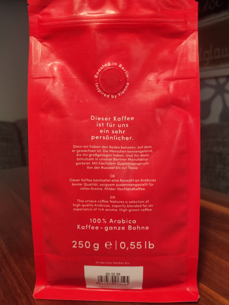 Haselnuss ist erkennbar, eine leichte Heidelbeernote ist ganz entfernt vorhanden. Solider Espresso, solider Cappuccino, aber es sticht nichts Besonderes hervor, es bleibt auch nichts im Mund und Gedächtnis.