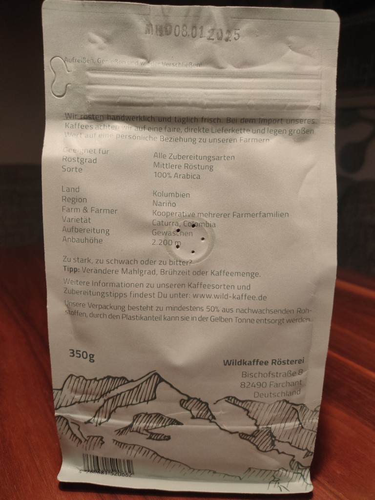 Frischer, heller, angenehmer Geruch, den man gerne inhaliert. Die Bohnen sind mittelstark geröstet. Es ist eine leichte Säure bemerkbar, die aber nicht im Vordergrund ist. Dafür treten interessante Noten von Kirsche und Marzipan hervor, die ein interessantes Geschmackserlebnis liefern. Der Espresso macht Spaß, hält aber die Crema nicht lange. Der Cappuccino schmeckt mit diesen Bohnen richtig lecker.