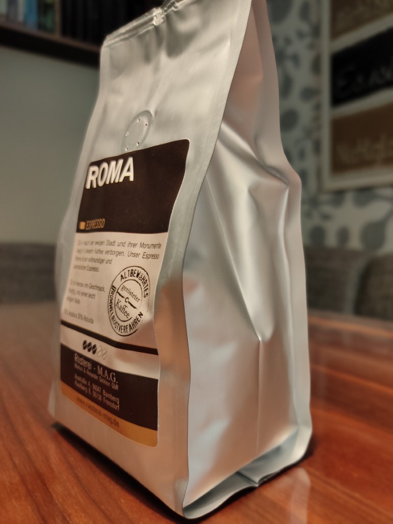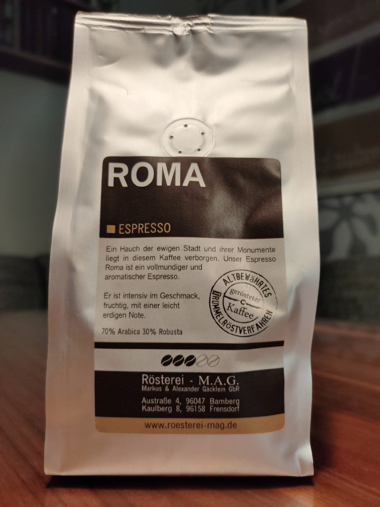 Kräftiger Duft nach Schokolade beim Öffnen der Packung. Insgesamt kann der Espresso diese Note nicht transportieren. Die Röstaromen überwiegen. Es schmeckt leicht verbrannt. Im Mund verbleibt ein stumpfes Gefühl. Der Cappuccino ist in Ordnung.